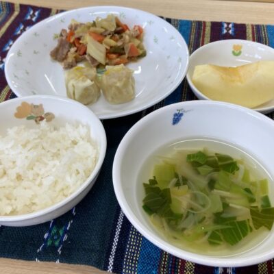 3月26日のメニュー 今日のこんだて 今日のこんだて タンドリーチキン ドレッシングサラダ かき玉汁 いよかん、バナナ おやつ 牛乳 アップルパイ 焼きたてのアップルパイ、みんなおいしく食べました。「サクサクでおいしかった!」「りんごがいっぱい入ってたー!」とうれしい声がたくさん聞こえてきました。 今日のこんだて 3月25日のメニュー前の記事 3月27日のメニュー次の記事
