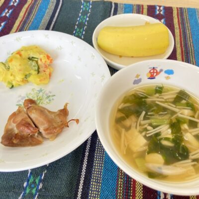 4月22日のメニュー 今日のこんだて 今日のこんだて ポークチャップ コーンポテト みそ汁(小松菜、厚揚げ、椎茸) バナナ おやつ 麦茶 わかめおにぎり 今日のこんだて 4月21日のメニュー前の記事 4月23日のメニュー次の記事