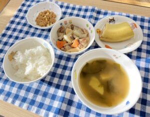 11月12日のメニュー 今日のこんだて 今日のこんだて ご飯 筑前煮 チーズ納豆 みそ汁⁽さつま芋、わかめ、椎茸) バナナ 今日のおやつ 麦茶 たぬきおにぎり 今日のこんだて 11月11日のメニュー前の記事 11月13日のメニュー次の記事