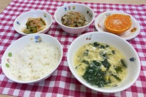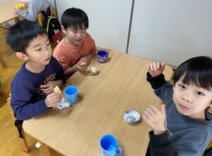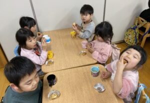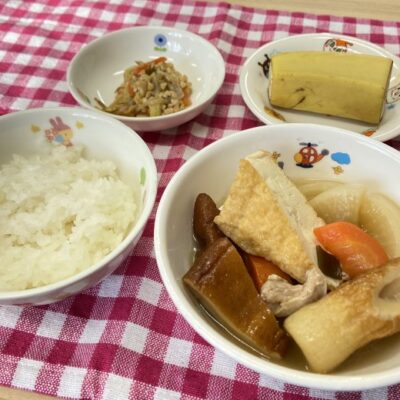 12月18日のメニュー 今日のこんだて 今日のこんだて ご飯 プルコギ風炒め もやしナムル スーミータン みかん 今日のおやつ 麦茶 備蓄用ソフトパン 今日は備蓄用のソフトパンをみんなで食べました。保育園では非常食として乾パンだけでなく、子ども達が食べ慣れているようなパンなども備蓄しています。プレーンと黒糖とオレンジのいろんな味を食べて自分の好きな味を見つけている子ども達でした。 今日のこんだて 12月17日のメニュー前の記事