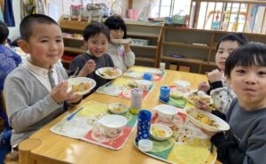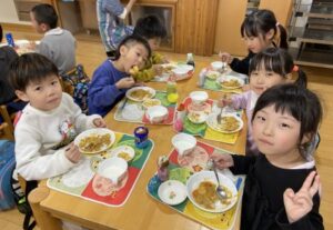 3月19日のメニュー 今日のこんだて 今日のこんだて ポークカレー フレンチサラダ バナナ 牛乳 卒園式前最後の給食はみんなが大好きなポークカレーでした。朝登園してきた時から「今日カレーだよね!」と楽しみにいていた子ども達、おかわりもたくさんしました。小学校でも給食をたくさん食べて心も体もすくすく大きくなってね。 今日のこんだて 3月18日のメニュー前の記事