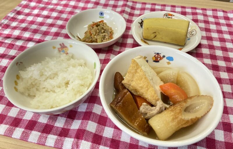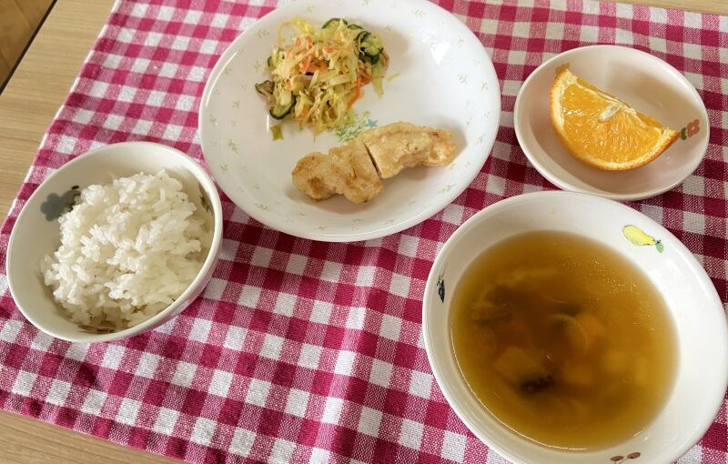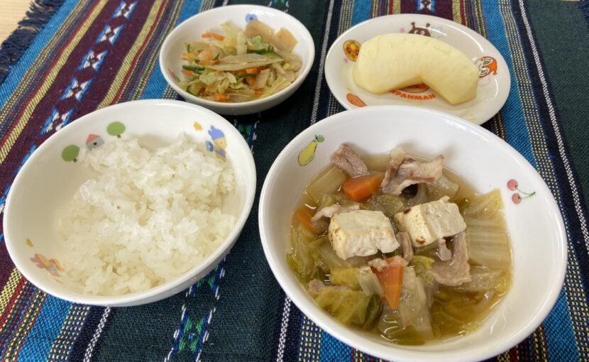 西荒瀬保育園では、地域でとれた新鮮な野菜を取り入れ、素材を生かした優しい味付けの食事を提供しています。