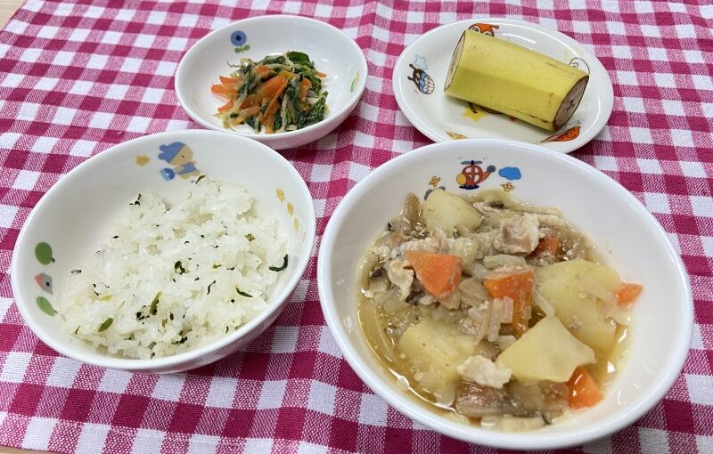 西荒瀬保育園では、地域でとれた新鮮な野菜を取り入れ、素材を生かした優しい味付けの食事を提供しています。