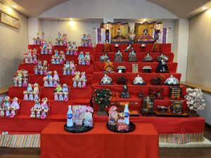 子どもたちが作ったお雛様も一緒に飾ってパーティーの準備ができました。