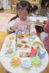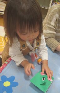 子育て支援センター〇おもちゃ作り 2025.11.28 大型絵本「ぴょーん」を見て、ぴょーんとジャンプするおもちゃを作ったよ。 ソルトマラカスも作り、ママ達が振るのに夢中でした。 お絵描きやおもちゃでも遊んだよ~。 また遊びに来てくださいね★ みどりの保育園 まつぼっくりツリー作り前の記事
