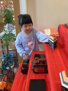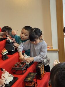 雛飾りを見守っていたそよかぜぐみさんが、完成を喜びました!健やかに成長されますように。