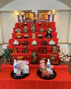 そらぐみさんが中心となって、玄関エントランスにひな人形を飾りました。