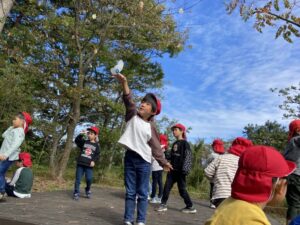 “空飛ぶ種”を作ってみんなで飛ばすと……ふわふわ飛んでいきました!