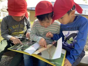 そしてベンチに座って絵本タイム。