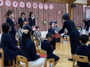 卒園おめでとう! 2026.03.20 今日はそらぐみさんの卒園式。園長先生から保育証書を受け取ると「ありがとうございます」ととってもいいお顔でした。 毎日元気に通ってくれてありがとう!一年生応援しています!今日は本当におめでとう! 子育て支援センター コマ作り前の記事