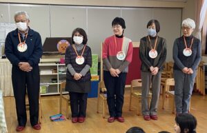 一年間ありがとうの気持ちを込めて、そらぐみさんが手作りメダルをプレゼント。